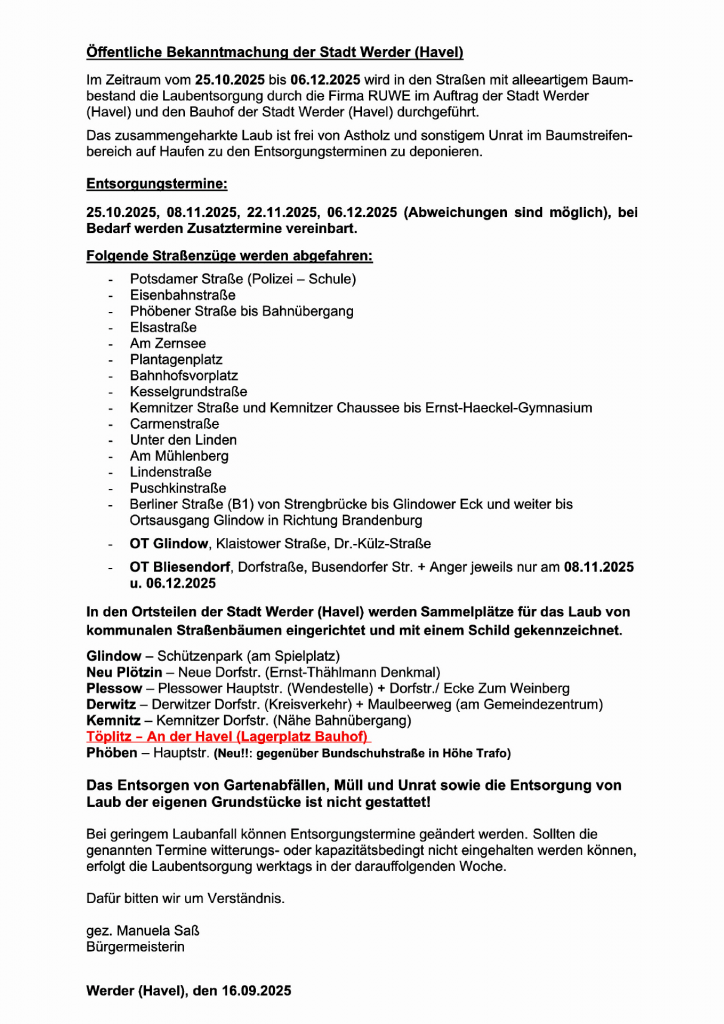 Amtliche Bekanntmachung der Stadt Werder (Havel) über das Widerspruchsrecht nach Bundesmeldegesetzes (BMG) [18 KB]